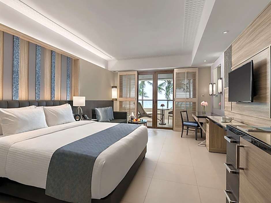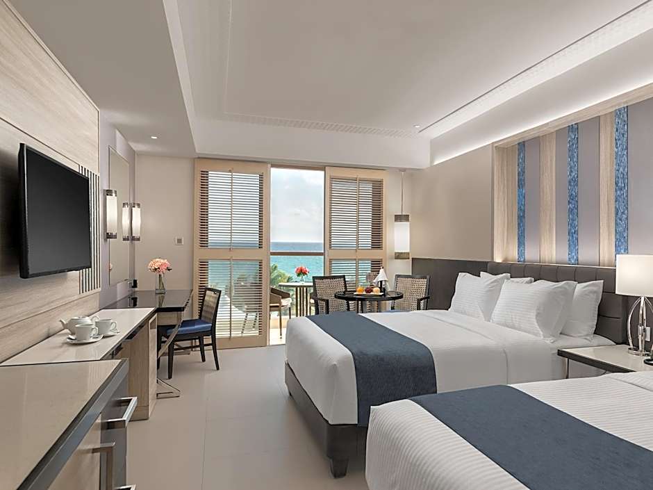 GRAND ROOM WITH BEACH VIEW is 495 square feet and includes extra beds on demand, desk, and safe.